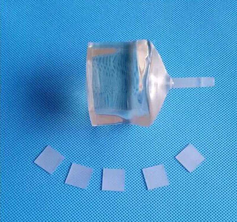 铝酸镁(MgAl2O4)可以III-V族氮化物器件薄膜的衬底基片,同时广泛应用于声波和微波器件及快速 IC 外延基片,另外与外延硅薄层晶格匹配良好,衬底中铝原子向外延硅薄层内的自掺杂小,热稳定性好,与硅的膨胀系数较为接近,硬度较小,加工性能较好等,因此可以作为超高速大规模集成电路的优质绝缘衬底材料之一。目前我们可以提供最大直径2英寸的无孪晶、无晶畴、超光滑的高质量衬底基片(FWHM<50 arcsec="">粗糙度Ra<0.5 nm="">)。